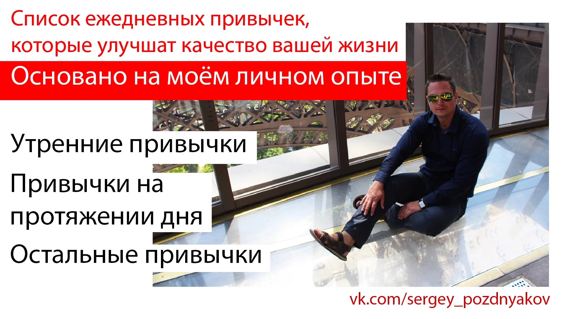 Список ежедневных привычек, которые улучшат качество вашей жизни | Основано на моём личном опыте Сегодня я хочу поделиться с вами своими привычками, которые я накопил за свою жизнь, читая и изучая книги и статьи по саморазвитию. Я не сомневаюсь, что применяя эти привычки, вы почувствуете, как ваша жизнь становиться лучше и насыщенней. Ну что начнем? - Подписывайтесь на мой канал в YOUtube https://www.youtube.com/channel/UCQBy3iEELc0ltPAt_gkCkOQ - Я в Rutube https://rutube.ru/channel/26552914/ - Я VK https://vk.com/sergey_pozdnyakov - Я в ОК https://ok.ru/group51148294651980 - Я в Яндекс Дзен https://zen.yandex.ru/id/608c778a1f08643617f9a192 - Моя БИБЛИОТЕКА https://vk.com/market-11000336?section=album_1 - #САМОРАЗВИТИЕ #Список_ежедневных_привычек