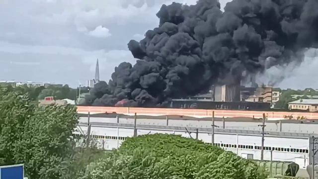 Ангар с покрышками горит на площади в 400 квадратных метров во Фрунзенском районе Петербурга