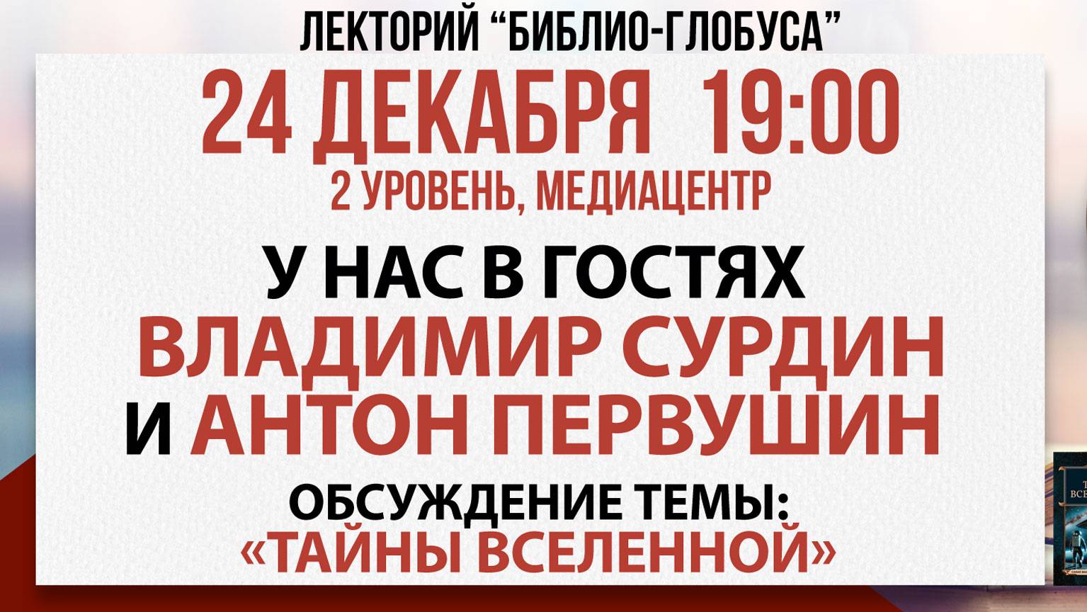Лекторий Библио-Глобуса: «Тайны Вселенной», 24 декабря 2024