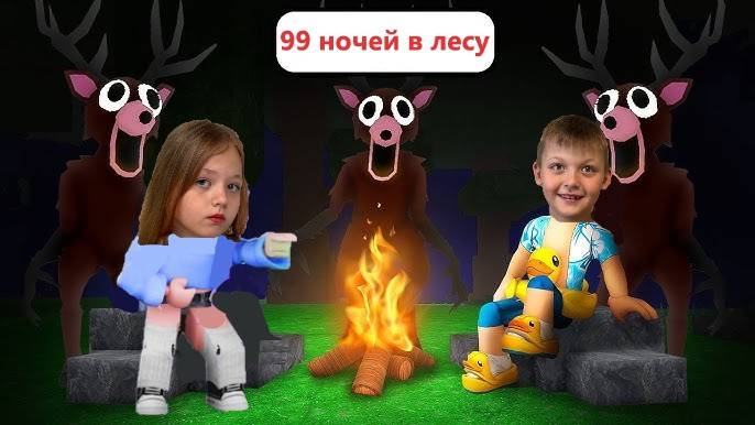 ОЛЕНЬ ЛЮДОЕД ХОЧЕТ СКУШАТЬ НА ОБЕД!😄 ВЫЖИВАЕМ 99 НОЧЕЙ В ЛЕСУ!🌲 Даринелка плей ROBLOX Дарина и макар пытаются выжить в лесу.. прятки от оленя, олень роюлокс Спасибо за лайк и подписку!