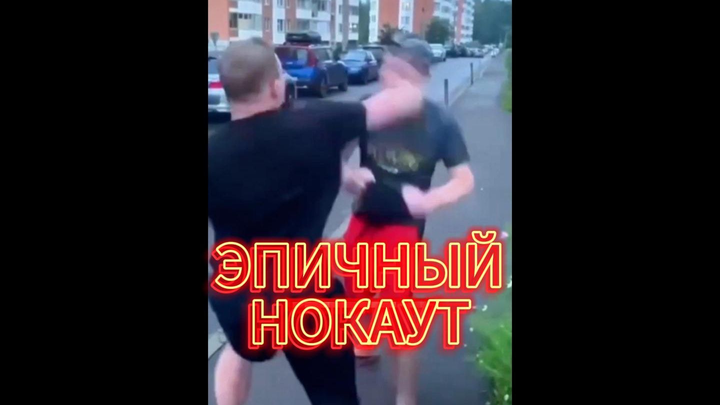 😎👟 Парень в кепке и тапочках докопался до слона в черной футболке. После своего же брошенного удара — эффектный нокаут 💥😵 Быстрота — не всегда сила... #нокдаун #нокаут #ММА #уличныебои #жесть