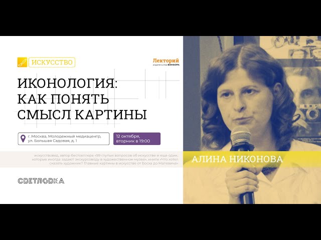 Черный квадрат Малевича. Фантазии Пикассо. Странные персонажи Сальвадора Дали. Иногда даже самые популярные произведения могут казаться непонятными и некрасивыми. Так что же хотел сказать автор и почему картина приобрела такую известность? На лекции Алины Никоновой «Иконология: как понять смысл картины» обсудим великие шедевры, которые не поддаются разгадке с первого взгляда. Алина Никонова — искусствовед, автор бестселлера «99 глупых вопросов об искусстве и еще один, которые иногда задают экскурсоводу в художественном музее» и «Что хотел сказать художник? Главные картины в искусстве от Босха до Малевича». Шедевры живописи не всегда красивы в привычном понимании и не всегда понятны без дополнительных объяснений. Они написаны в разных художественных стилях и направлениях, выполнены в разных жанрах и техниках. Но есть то, что их объединяет. Это способность авторов влиять на наши эмоции. Художники будто приглашают зрителей проследовать в свой внутренний мир и познакомиться с творческим процессом. На встрече с Алиной Никоновой узнаем много нового о гениальных картинах и их талантливых создателях: ? Как расшифровать тайные знаки и символы, которыми пользуются художники? ? Почему важно знать, в какой исторический период была написана картина? ? Какую роль в восприятии полотна играет цвет? ? Как рождаются настоящие шедевры и почему даже их авторы подчас не могут объяснить и повторить их оглушительный успех?