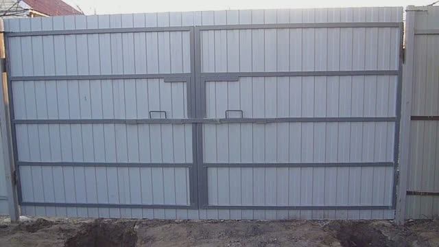 Работы и самоделки . Сварил распашные ворота . И установил их . Ямы от столбов ещё не засыпал . Вытаскивал столбы с бетоном . Там до этого стояли металлические ворота . Я их демонтировал . Ворота распашные простые без рамки .