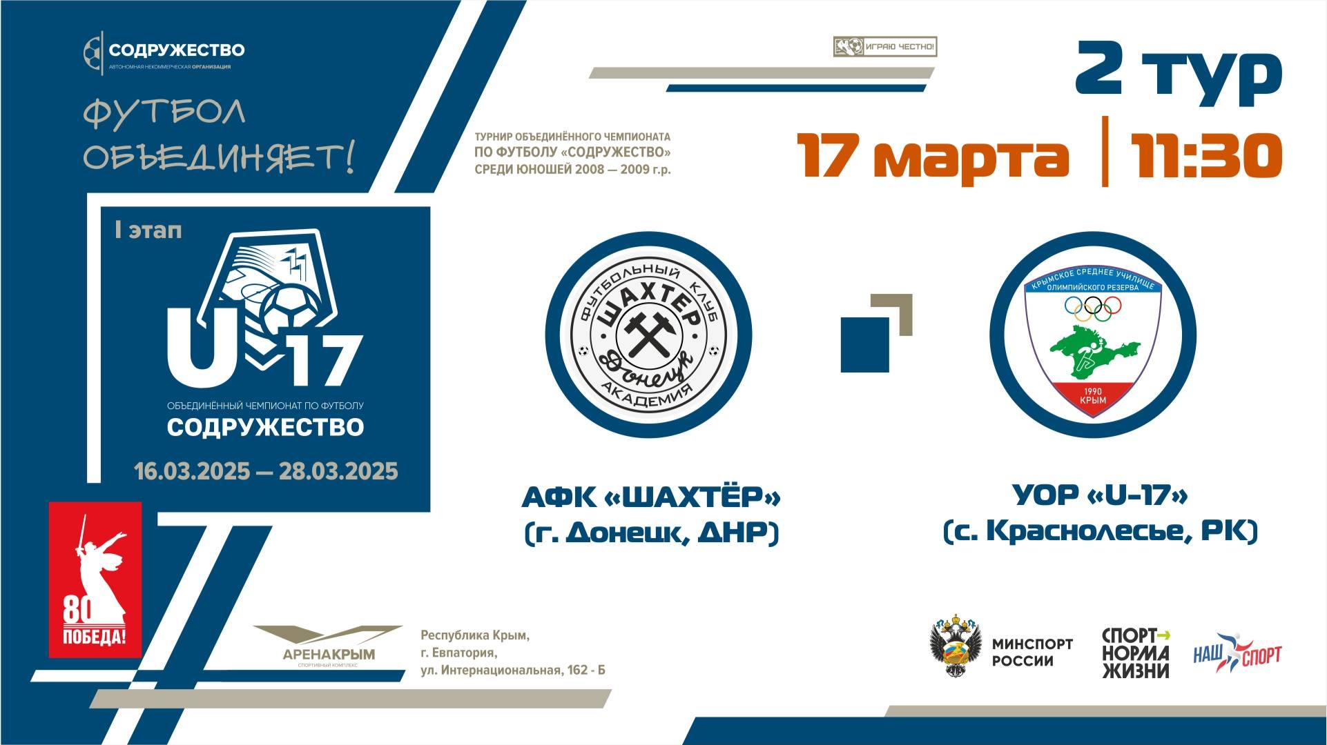 2 ТУР | U-17 | АФК «Шахтёр» (г. Донецк, ДНР) - УОР «U-17» (с. Краснолесье, РК)