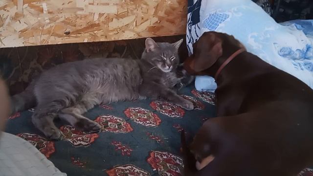 Пес и кот. Крепкая мужская дружба .