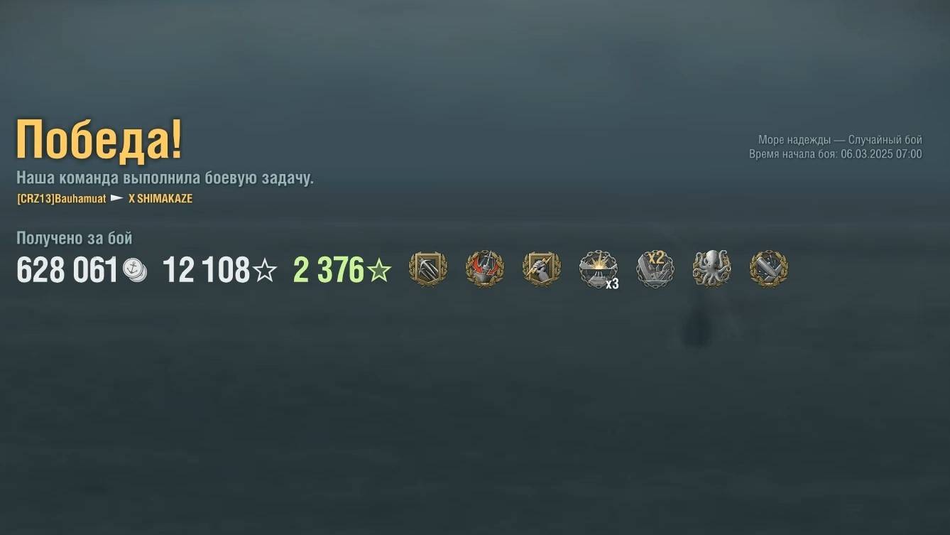 Эсминец Shimakaze. Игрок: Bauhamuat (NA). Карта: Море надежды - Случайный бой. Урон: 280к. Shimakaze - Эсминец Японии 10 уровня.