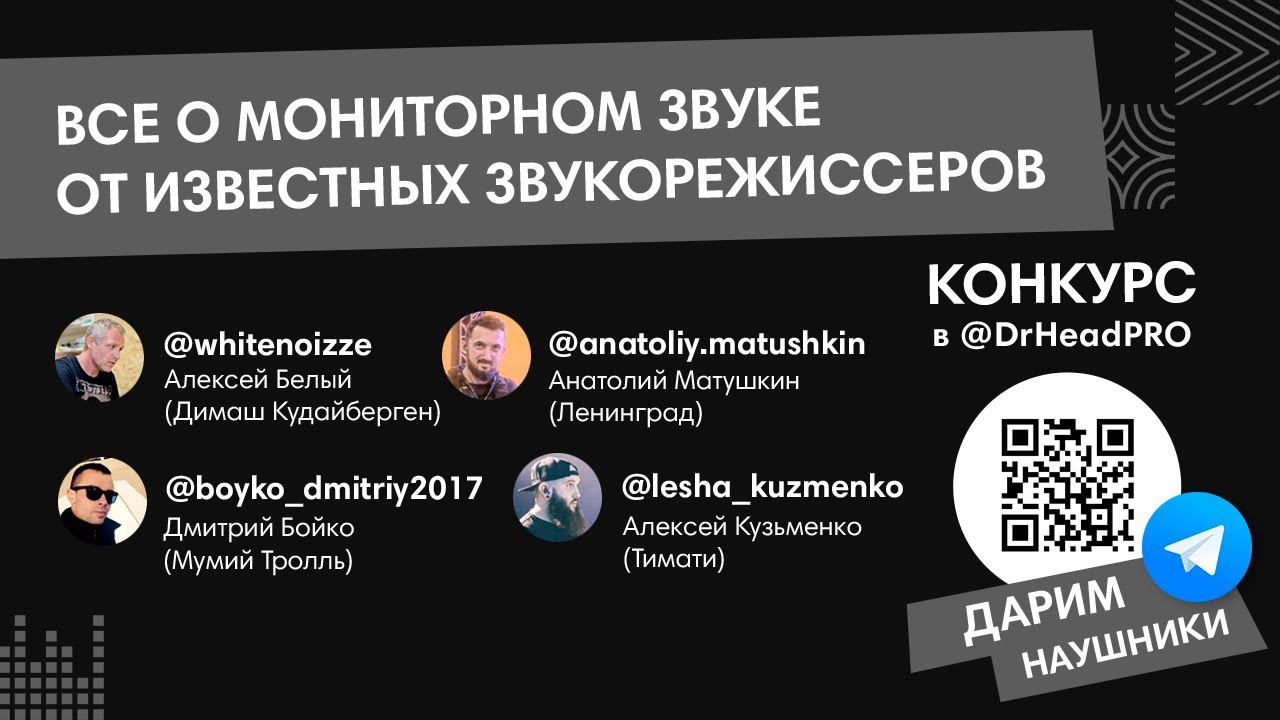 Купить продукцию PRO аудио в магазинах Dr.Head - https://doctorhead.ru/catalog/pro-audio/ В вебинаре участвуют: Анатолий Матушкин(звукорежиссер группировки Ленинград) - https://www.facebook.com/anatoliy.matushkin Дмитрий Бойко(Мумий Тролль) - https://www.facebook.com/profile.php?id=100006692225676 Алексей Кузьменко(Black Star) - https://www.facebook.com/alex.kuzmenko.79 Алексей Белый(Димаш Кудайберген) - https://www.facebook.com/whitenoizze Вы подробно узнаете о зоне ответственности «мониторщика», порядке действий во время концерта, особенностях работы с ушными и напольными мониторными системами и многое другое. ★КОНКУРС В НАШЕМ ТЕЛЕГРАМ КАНАЛЕ - https://t-do.ru/drheadPRO (прикрепленный пост) ★Подписчикам — скидки! Промокод drheadtv! ►Наш сайт: https://doctorhead.ru/ ►Наш блог: https://doctorhead.ru/news/ :phone: Есть вопросы? Звоните, поможем! 8 (800) 333 09 89 ►DrHead в Instagram: https://www.instagram.com/doctorheadru/ ►DrHead в «Вконтакте»: https://vk.com/drhead ►DrHead в Facebook: https://www.facebook.com/drheadru/