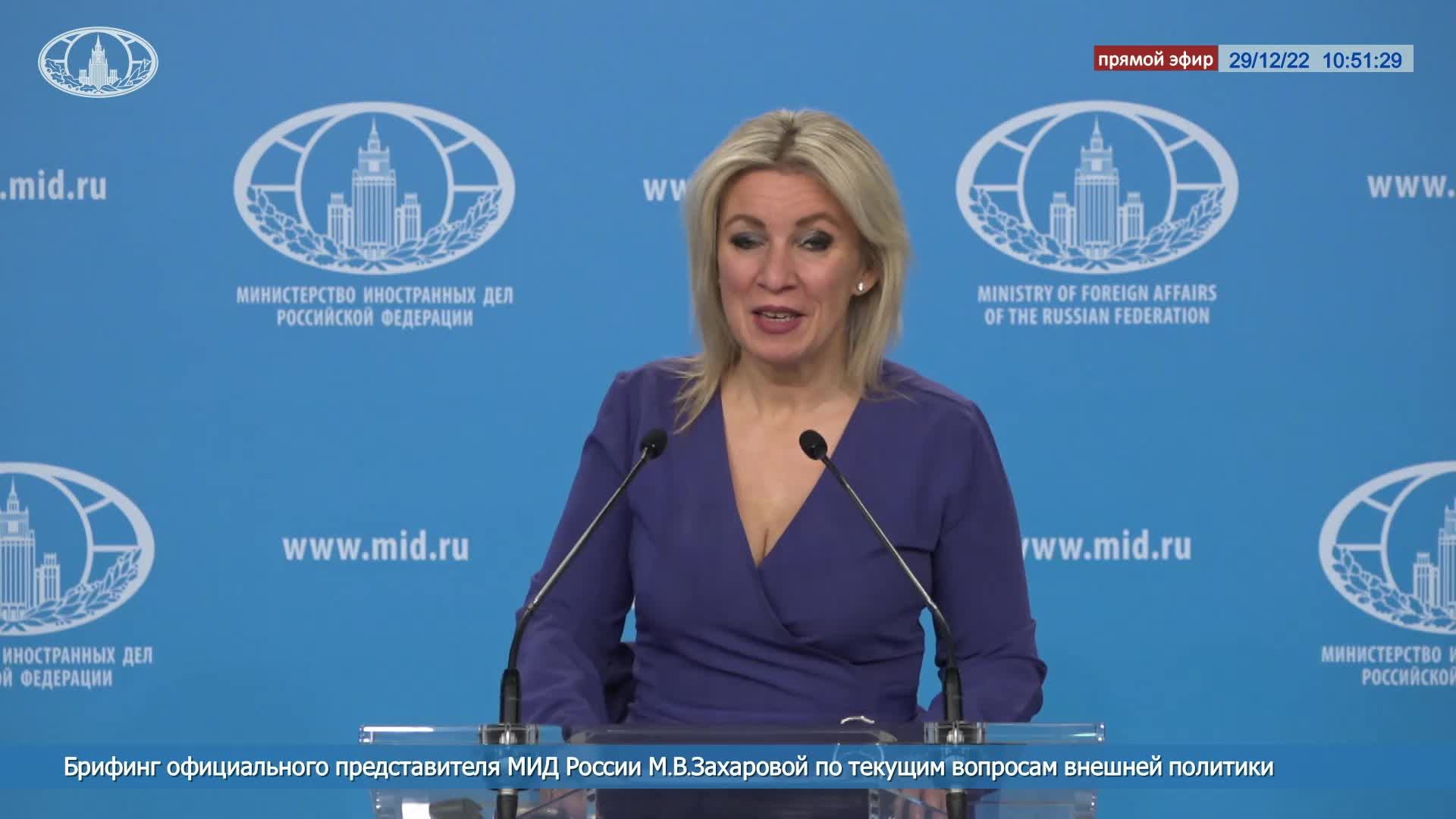 Брифинг официального представителя МИД России М.В.Захаровой по текущим вопросам внешней политики, 29/12/2022