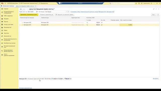Управление информацией о ценах и партиях поставщиков в 1C:ERP