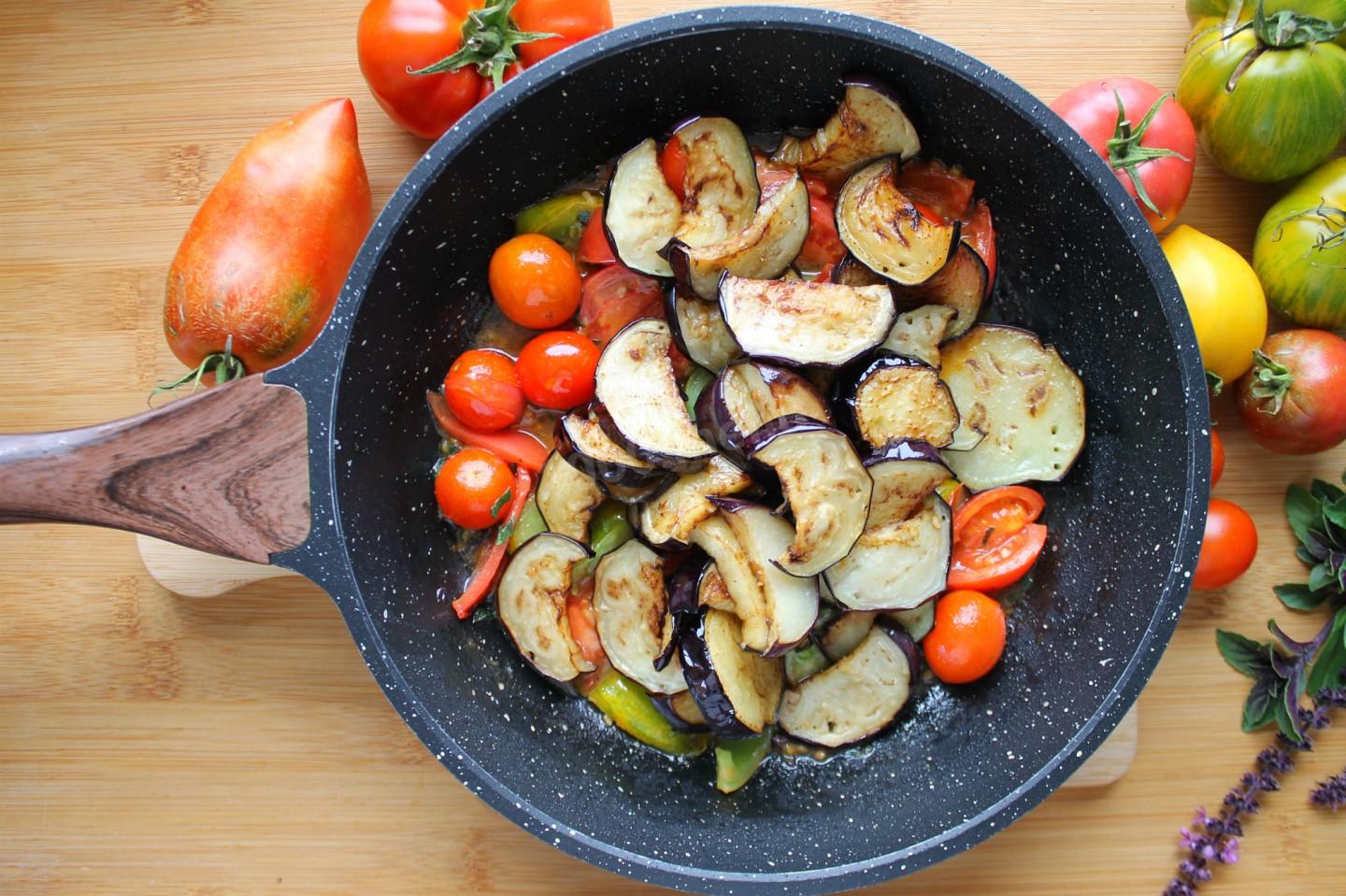 ГОТОВИМ БЫСТРО И ВКУСНО Баклажаны на сковороде с чесноком и помидорами.mp4