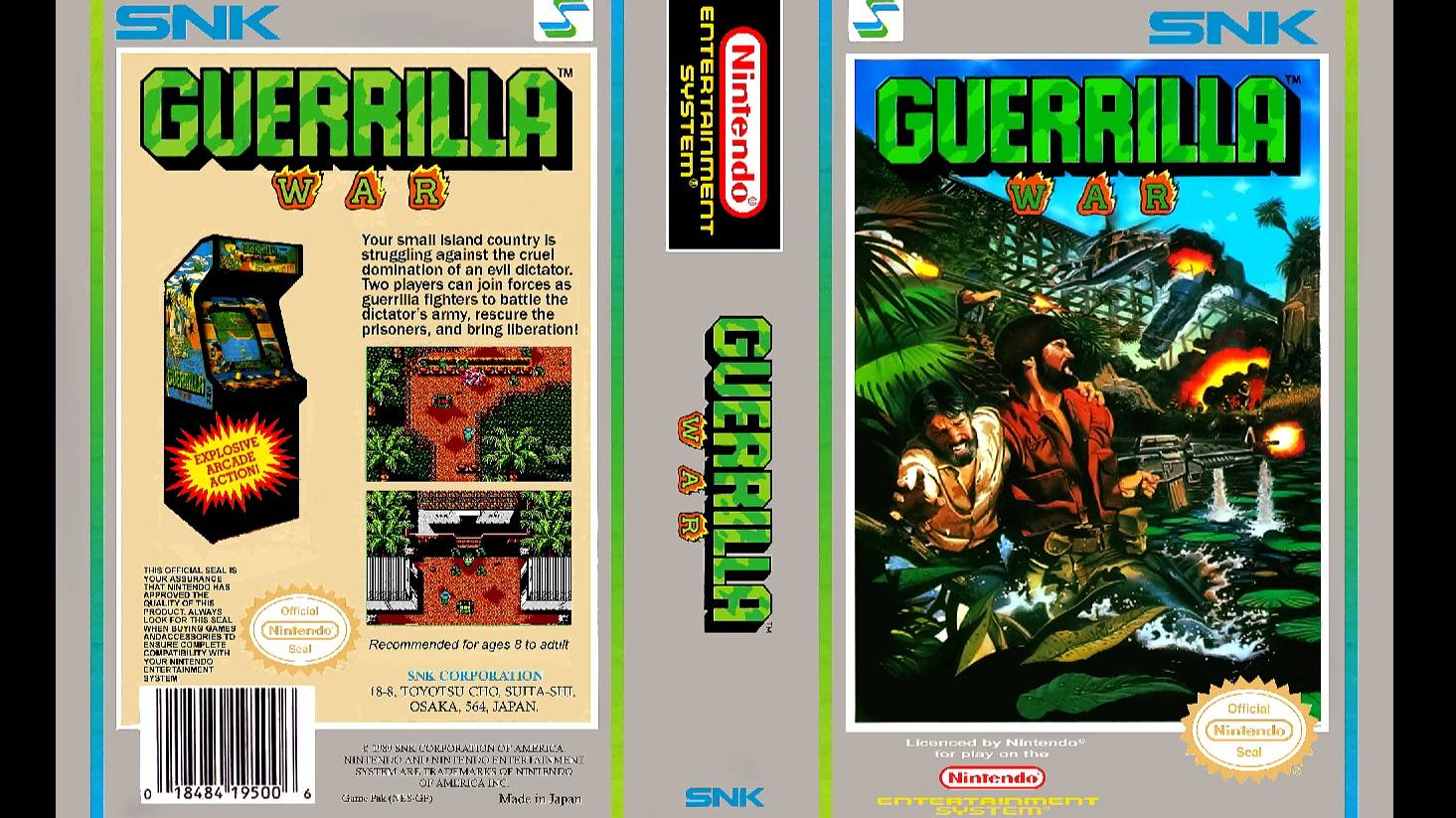 "GUERRILLA WAR" ("GUEVARA" в Японии) - видеоигра в жанре "беги-стреляй", разработанная компанией SNK в 1987 году. Изначально была выпущена в виде аркадного игрового автомата, впоследствии была портирована на игровую консоль NES/FAMICOM и ряд домашних компьютеров. Действие игры в американской версии происходит на неизвестном карибском острове, два неизвестных революционера сражаются с армией местного неизвестного диктатора. В японской версии игры главных героев зовут Че Гевара и Фидель Кастро, а остров по очертанию - Куба, диктатор - проамериканский Фульхенсио Батиста. Игровой процесс аналогичен играм "IKARI WARRIORS" и "COMMANDO". Главным отличием версии для игрового автомата являлось использование вращающихся джойстиков, позволявших выбирать направление стрельбы независимо от направления движения героя. В начале игры герои вооружены автоматами и гранатами. Они могут собирать пленных, получая очки, при этом пленные могут быть убиты как противниками, так и героями, количество очков при этом уменьшается. Разные призы дают разное оружие - разрывные пули, огнемёт РПГ и так далее. Также в игре присутствуют танки, которые могут быть использованы игроком. Игра имеет бесконечные продолжения и проходится на одном дыхании за пол часа.