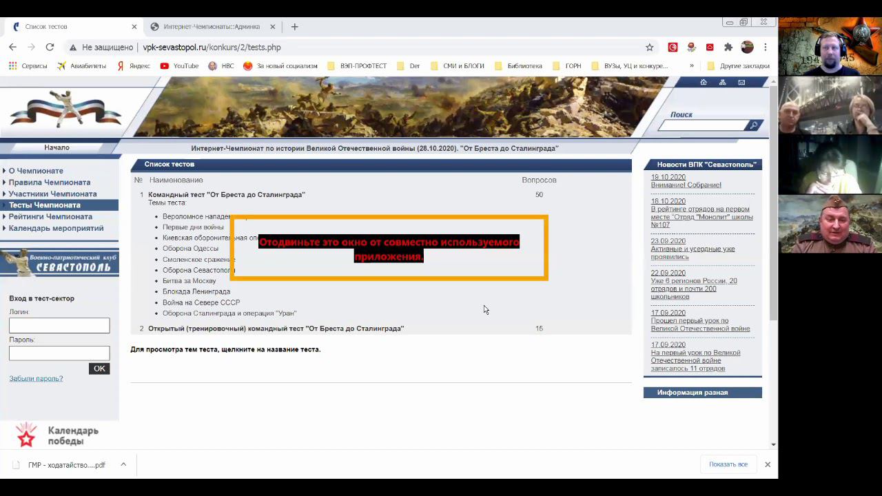 Организационное собрание, посвященное вопросам Интернет-Чемпионата по истории ВОВ.