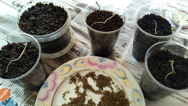 В конце января заложил семена айвы во влажный песок в пакетик. Через 3-4 месяца 7 семян из 11 в пакетике проросли. После посадки в грунт в контейнер взошли через два дня. Айва́ (лат. Cydōnia) — монотипный род древесных растений семейства Розовые (Rosaceae). Вид Айва обыкнове́нная, или Айва продолгова́тая (лат. Cydonia oblōnga) — единственный представитель этого рода. Листопадное дерево или кустарник высотой от 1,5 до 4—5 м, с косо вверх поднимающимися ветвями. Кора тонкая, чешуйчато-лупящаяся, на стволе и старых ветвях тёмно-серая, красновато-бурая или черновато-коричневая, гладкая; на молодых — буровато-серая, шерстисто-войлочная; побеги серо-зелёные, густо войлочноопушённые. Листья очерёдные, яйцевидные или овальные, иногда широко эллиптические, реже округлые, цельнокрайние, на вершине острые или тупые, с клиновидным, реже округлым или слегка сердцевидным основанием, сверху тёмно-зелёные, голые, снизу сероватые от войлочного опушения, длиной 5—10, до 12 см, шириной до 7,5 см, с черешком до 2 см. Прилистники опадающие, с железистыми волосками, обратно-продолговато-яйцевидные, реже ланцетные, длиной 6—12 мм, шириной 4—6 мм. Цветки правильные, большей частью одиночные, на коротких войлочно-опушённых цветоножках. Чашечка пятираздельная, остающаяся при плодах. Венчик бледно-розовый, белый или розовый, крупный, до 4,5—5 см в диаметре; лепестки обратнояйцевидные, с коротким ноготком. Тычинок 15—25, обычно 20. Пестик с нижней пятигнёздной, сросшейся с гипантием завязью; столбиков пять, густо опушённые, каждый из которых заканчивается косым выемчатым рыльцем; плодолистиков пять с железисто-пильчатыми краями, снаружи войлочно-опушённые, прикреплённые к верхнему краю кувшинообразно расширенной части гипантия; чашелистиков пять, цельные, продолговатые, отогнутые. Цветёт в мае - июне. Плод - ложное яблоко с пятью многосемянными гнёздами, волосистое, почти шарообразное или грушевидное, нередко тупоребристое, лимонного или тёмно-жёлтого цвета, иногда с красноватым односторонним «загаром», вначале войлочноопушённое, при созревании гладкое и твёрдое, диаметром 2,5—3,5 см у диких и до 15 см у культурных форм. Мякоть очень ароматная, малосочная, жёсткая от многочисленных каменистых клеток. Вкус терпкий, вяжущий, сладковатый. Семена красновато-коричневые, обратнояйцевидные, неправильно угловатые, с сильно ослизняющейся снаружи кожурой; вес 1000 семян 24—44 г. Плоды созревают в сентябре - октябре.