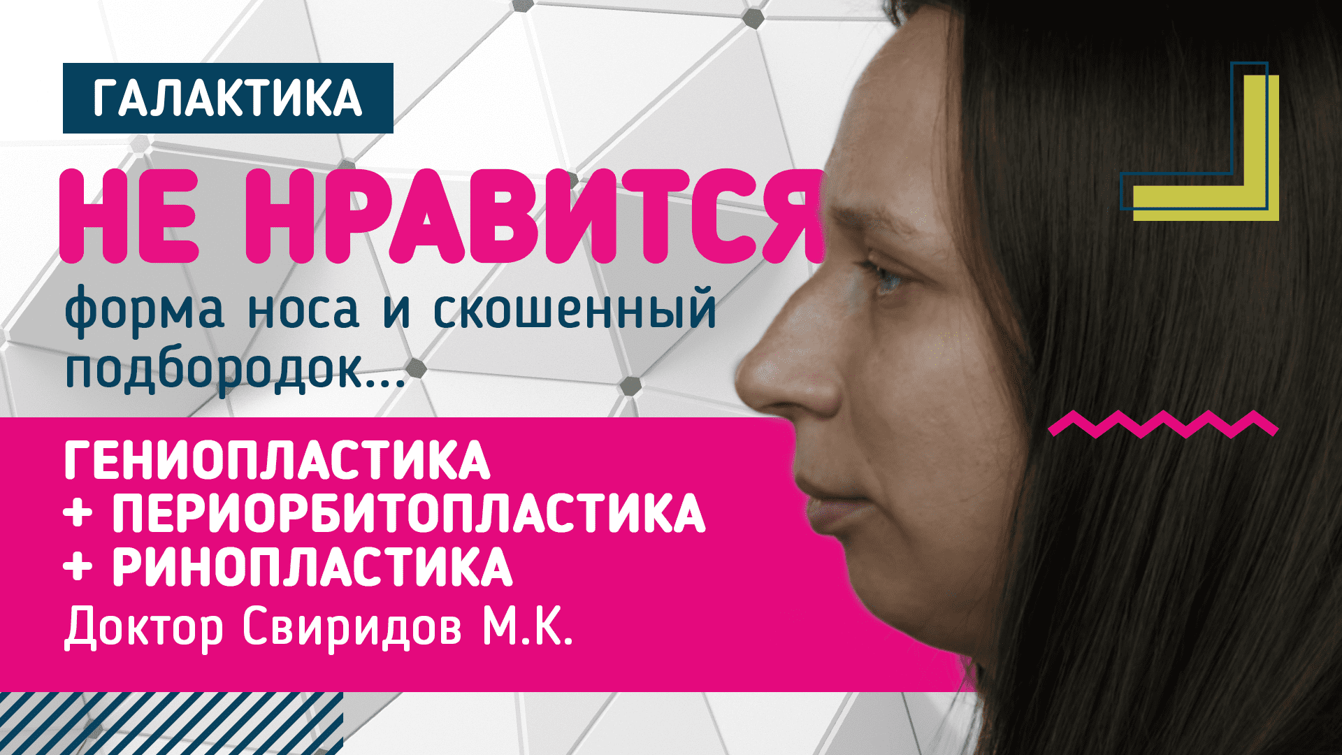 Елене давно не нравится форма ее носа и скошенный подбородок. Она считает что подбородок нужно нарастить, желательно своими тканями. Елене будут проведены сразу три операции: уменьшающая ринопластика, гениопластика - так как есть дефицит в области подбородка, и периорбитопластика, чтобы приподнять брови. ⌚ Нажмите на цифры для навигации по времени ролика: 0:03 Комментарий пациентки почему решилась на операцию 0:17 Комментарий пациентки о Максиме Константиновиче 0:38 Комментарий Свиридова М.К. о проблемах пацанки и как они будут решаться / Разметка 1:40 Комментарий пациентки об ожиданиях Официальный сайт: http://galaktika.clinic ? +7 (495) 648 68 38 ? info@galaktika.clinic Мы в соцсетях: INSTAGRAM: https://www.instagram.com/galaktika.clinic FACEBOOK: https://www.facebook.com/galaktika.clinic #Галактика_клиника #Галактика_пластика #galaktika_clinic #ринопластика #ринопластикамосква #сделатьринопластику #сделатьринопластикувмоскве #пластиканоса #пластиканосамосква #Периорбитопластика #сделатьПериорбитопластику #сделатьПериорбитопластикувмоскве #пластикаглаз #пластикаверхнейчастилица #Пластикавек #омоложениеглаз