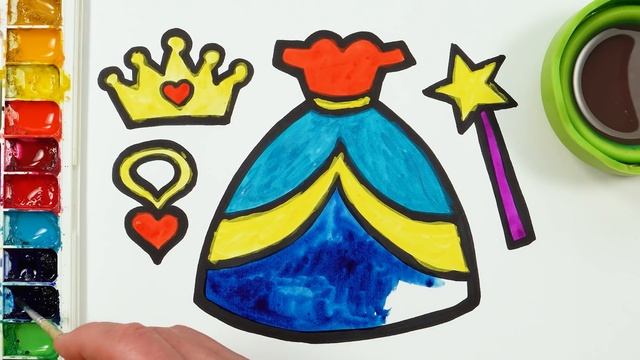 Рисование и раскрашивание платьея принцессы! Рисование для детей акварельными красками