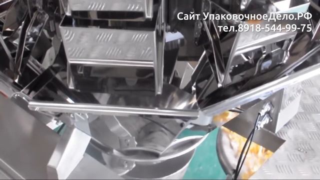 Линия упаковки снеков чипсов с мультиголовочным весовым дозатором