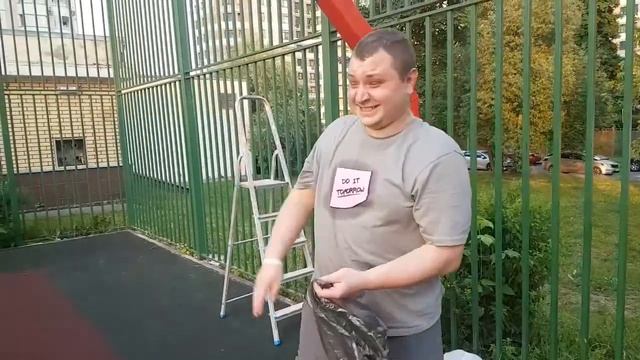 Подкрутить разболтавшиеся кольца, нарисовать разметку для стрита - душевный порыв настоящего любителя баскетбола. Саша Соловьёв - мой ученик. Ни когда не отличался в школе особым рвением к спорту, но переборов, скажем так, не простые болячки, в свободное время всегда на баскетбольной площадке. Очень было приятно ему помочь в ремонте площадки. Теперь здесь будет больше спортсменов и можно проводить турниры по стритболу.