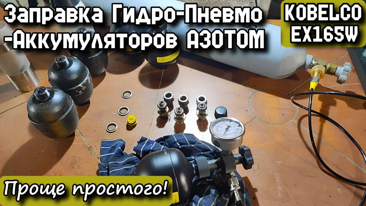 KOBELCO EX165W. Заправка Гидро-Пневмо-Аккумуляторов АЗОТОМ. Проще простого!
