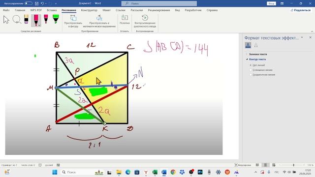 Площадь фигуры внутри квадрата (задача В.Казакова). Автор канала Зайнулин Андрей Евгеньевич. Просьба не заниматься пиратским копированием!