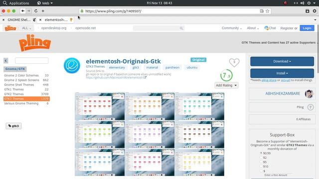 ******** GNOME Look Like elementary OS ******** It supports GTK 2, GTK 3, GNOME Shell, Budgie, Cinnamon, MATE, Xfce, etc. Install Gnome Tweek Tool : sudo apt install gnome-tweaks Downdload : Gtk theme : elementosh Gtk( https://www.pling.com/p/1409507/ ) Icon theme : elementosh Icons ( https://www.pling.com/p/1427890/ ) Shell theme : elementosh Shell ( https://www.pling.com/p/1429240/ ) Cursor theme : elementosh Cursor ( https://www.pling.com/p/1427074/ ) Gnome Extensions : User Themes Arc Menu Coverflow Alt-Tab Floating Docks Dynamic Panel Transparency ** If you like the theme then support project by giving ratings, thank you. ** For Other Themes : https://www.pling.com/u/abhishekzambare/ Donations : The theme is available for free. if you're enjoying the theme, feel free to buy me a cofee :) https://www.paypal.com/paypalme/abhis... Thank you.