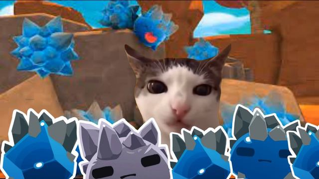 кот ест скалистого слайма в слайм ранчер