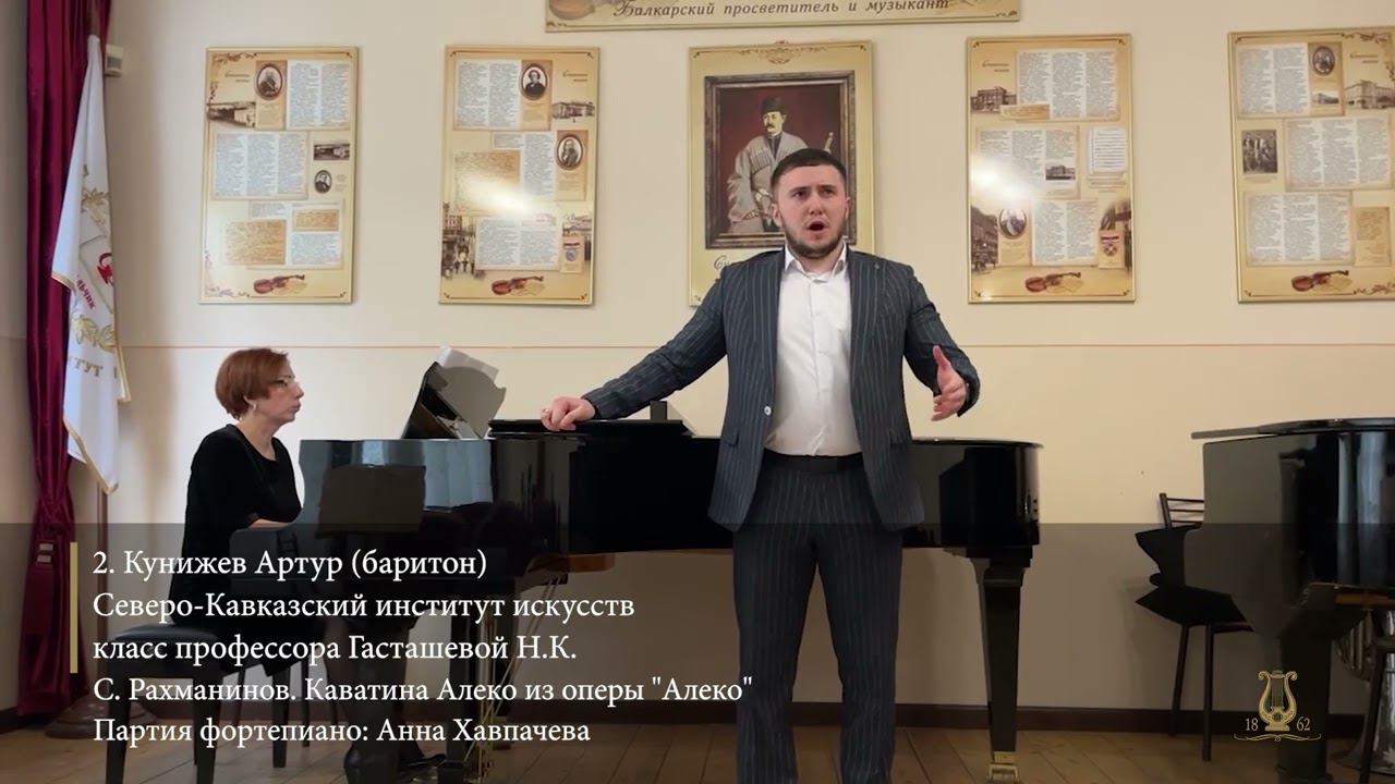 50 ВСЕРОССИЙСКИЙ СМОТР-КОНКУРС ВОКАЛИСТОВ - ВЫПУСКНИКОВ МУЗЫКАЛЬНЫХ ВУЗОВ Санкт-Петербург 2022 Северо-Кавказский институт искусств (Нальчик) 1. Казаков Марат 00:32 Рахманинов. Рассказ Старика из оп. "Алеко" Свиридов. "Роняет лес багряный свой убор" сл. Пушкина ф-но Анна Хавпачева 2. Кунижев Артур 09:37 Рахманинов. Каватина Алеко из оп. "Алеко" Чайковский. "Нет, только тот, кто знал" сл. Мея ф-но Анна Хавпачева 3. Надыкто Татьяна 17:26 Гречанинов. Ариозо Забавы из оп. "Добрыня Никитич" Русская народная песня "Травушка-муравушка" (в обработке В. Городовской) ф-но Анна Хавпачева 4. Хаджебиёкова Мира 23:27 Пуччини. Ария Лиу из оп. "Турандот" Дунаевский. "Если Волга разольется" сл. Лебедева-Кумача ф-но Анна Хавпачева 5. Янова Амина 28:44 Красев. Ария Дуни из оп. "Морозко" Шериева. "Ты в моих мыслях" ф-но Анна Хавпачева Московская консерватория им. П.И. Чайковского 6. Басенко Михаил 34:40 Бородин. Каватина Владимира Игоревича из оп. "Князь Игорь" симф. орк. оперного театра МГК дир. Александр Жиленков Бетховен. "Новая любовь, новая жизнь" сл. Гете ф-но Анна Алексеева 7. Бородейко Марианна 43:49 Моцарт. Ария Керубино из оп. "Свадьба Фигаро" ф-но Ольга Грибовская Глинка. "Я помню чудное мгновенье" сл. Пушкина ф-но Семен Березин 8. Быкова Александра 50:06 Бах. Ария альта из оратории "Страсти по Матфею" Шуберт. "Лесной царь" сл. Гете ф-но Семен Березин 9. Де-Рель Габриел 01:03:46 Мусоргский. Песня Варлаама из оп. "Борис Годунов" Мусоргский. "Полководец" сл. Голенищева-Кутузова ф-но Ирина Соловьева 10. Кулиджанян Артак 01:12:50 Чайковский. Ария Роберта из оп. "Иоланта" симф. орк. оперного театра МГК дир. Юрий Демидович Рахманинов. "Вчера мы встретились" сл. Полонского ф-но Алина Смирнова 11. Куликов Олег 01:18:35 Чайковский. Ария Ленского из оп. "Евгений Онегин" симф. орк. оперного театра МГК дир. Александр Жиленков Чайковский. "Соловей" сл. Пушкина ф-но Юлия Никитина 12. Леониди Юлия 01:27:31 Ипполитов-Иванов. Ариозо Аси из оп. "Ася" ф-но Маргарита Шатилова Слонимский. "Белой ночью" сл. Ахматовой ф-но Людмила Духан 13. Мерман Изабелла 01:31:57 Пуччини. Вальс Мюзетты из оп. "Богема" симф. орк. оперного театра МГК дир. Александр Жиленков Рахманинов. "Сон" сл. Сологуба ф-но Алина Смирнова 14. Ткачева Вероника 01:38:39 Верди. Ария Амалии из оп. "Разбойники" ф-но Ольга Грибовская Дебюсси. "Мандолина" сл. Верлена ф-но Семен Березин 15. Чернов Дмитрий 01:44:16 Чайковский. Сцена и ария Елецкого из оп. "Пиковая дама" орк. муз. театра "Геликон-Опера" дир. Евгений Бражник Рахманинов. "Она, как полдень, хороша" сл. Минского ф-но Юлия Никитина 16. Чжан Мэнвэнь 01:52:01 Оффенбах. Куплеты Олимпии из оп. "Сказки Гофмана" ф-но Фэн Кай Рахманинов. "Здесь хорошо" сл. Галиной ф-но Ольга Грибовская 17. Шашко Дмитрий 01:59:42 Чайковский. Ария Гремина из оп. "Евгений Онегин" симф. орк. оперного театра МГК дир. Александр Петухов Бородин. "Отравой полны мои песни" сл. Мея (из Гейне) ф-но Алина Смирнова Российская академия музыки им. Гнесиных (Москва) 18. Ван Юнтао 02:07:09 Рубинштейн. Эпиталама Виндекса из оп. "Нерон" Уильямс. "Бродяга" сл. Стивенсона ф-но Ольга Нестерова 19. Осипов Константин 02:12:11 Рахманинов. Каватина Алеко из оп. "Алеко" ф-но Андрей Пак Даргомыжский. "Ночной зефир струит эфир" сл. Пушкина ф-но Александра Борисова 20. Севастьянова Полина 02:21:44 Моцарт. Ария Фьордилиджи из оп. "Так поступают все" Пуленк. "Паганини" сл. Вильморен ф-но Евгений Сергеев 21. Стуженова Валерия 02:28:31 Моцарт. Ария Донны Эльвиры из о