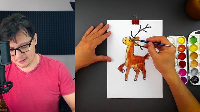 Как нарисовать ОЛЕНЯ зимой - рисуем красками с РыбаКит