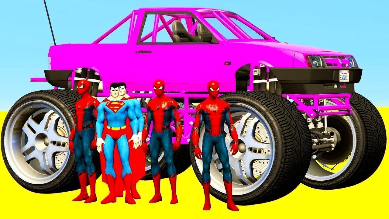Мультик про Машинки Цветные Машины Монстр Трак и Человек Паук Мультики для детей