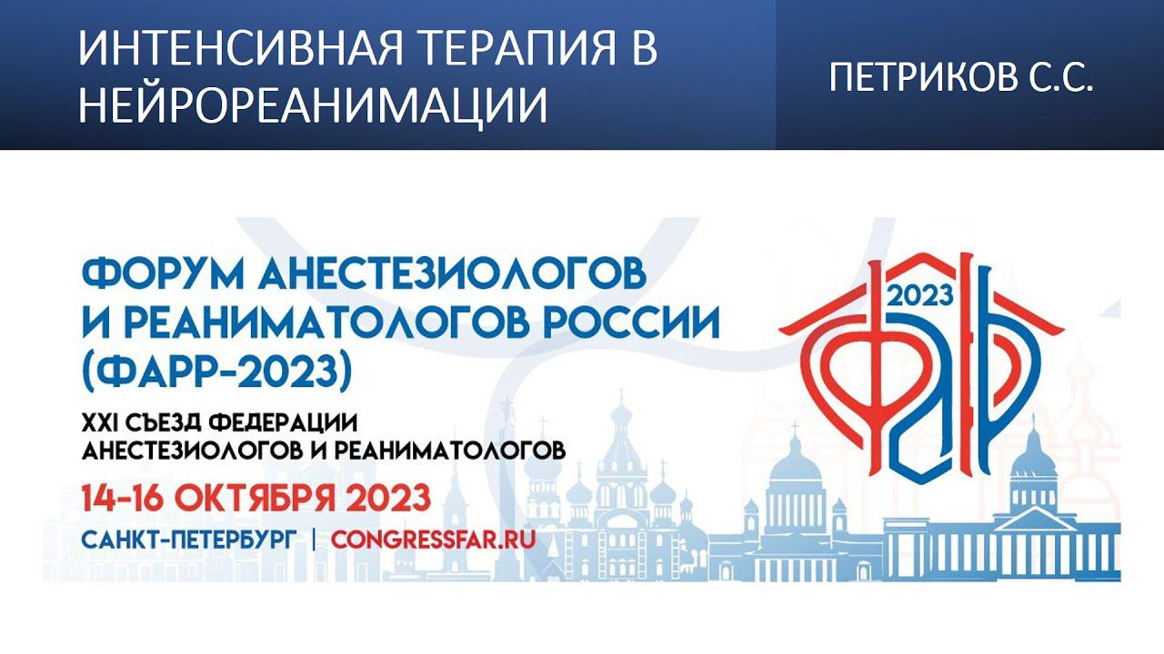 Видеозапись ФАРР-2023, XXI съезд Федерации анестезиологов и реаниматологов 14-16 октября 2023, Санкт-Петербург. Сергей Сергеевич Петриков "Интенсивная терапия в нейрореанимации"