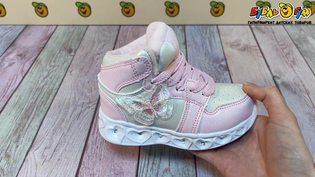 335396 Кроссовки Pasito утепленные на шнуровке с декоративной бабочкой и огоньками розовые