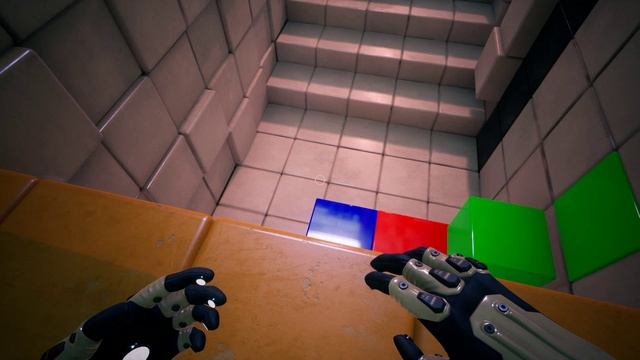 Геймплей головоломки от первого лица, в которой нам предстоит решать задачи с кубами разного цвета и с разными свойствами.
