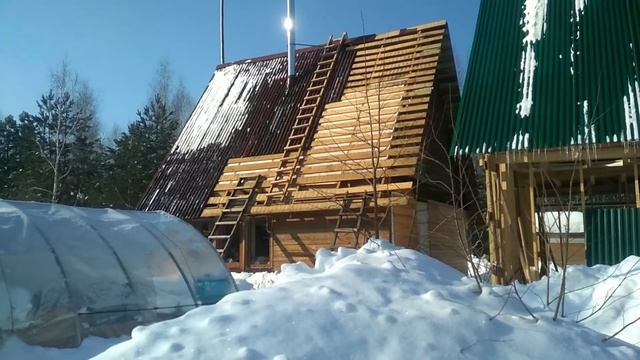 Поселение Родовых поместий Миленки, Калужская область, февраль 2021. Кроем крыши в Родовом поместье.