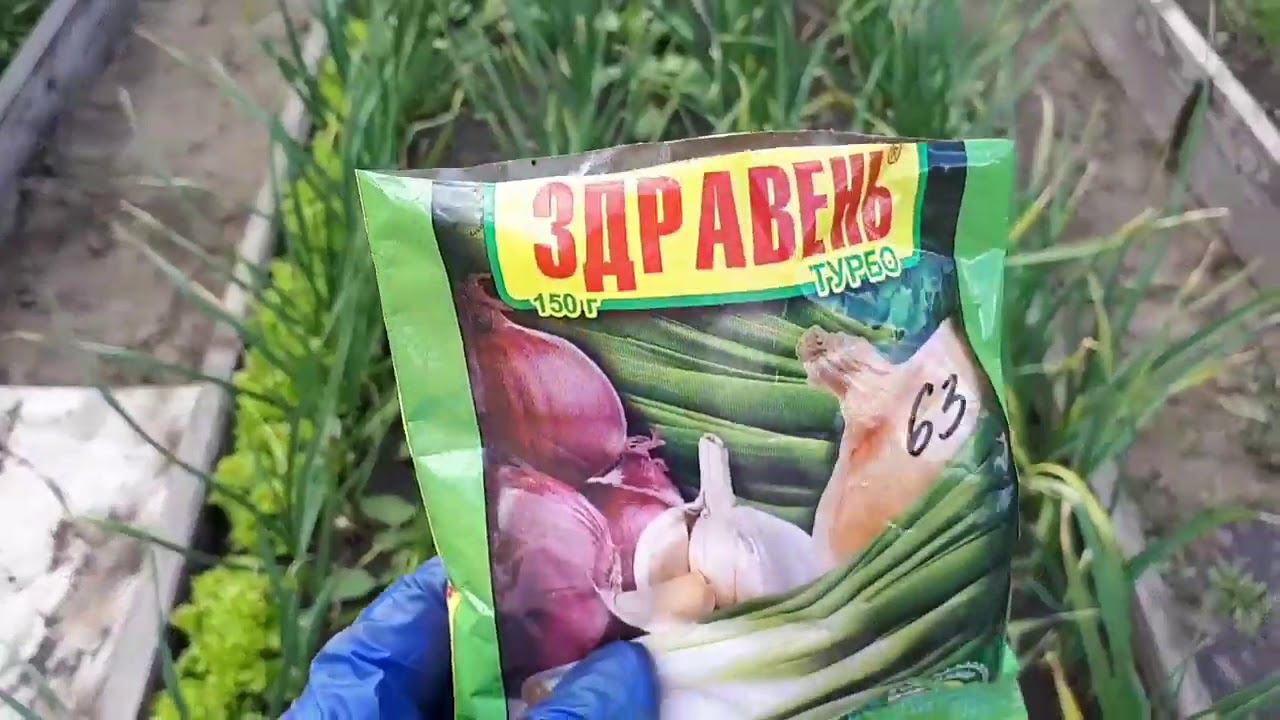 Подкормим чеснок в очередной раз органо-минеральным удобрением.