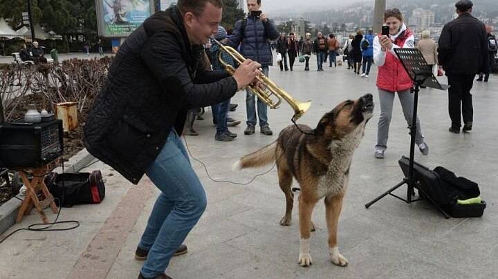 Трубач играл, а Мухтар ему подпевал. Сейчас Мухтара нет. Это Набережная Ялты - грустно