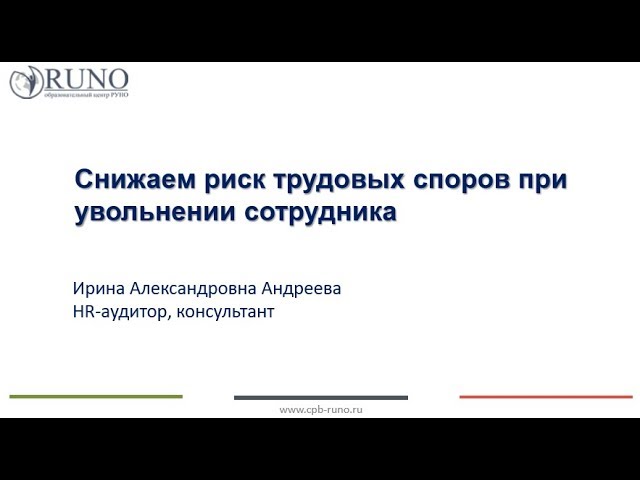 Снижение рисков трудовых споров при увольнении сотрудника I Андреева И.А.