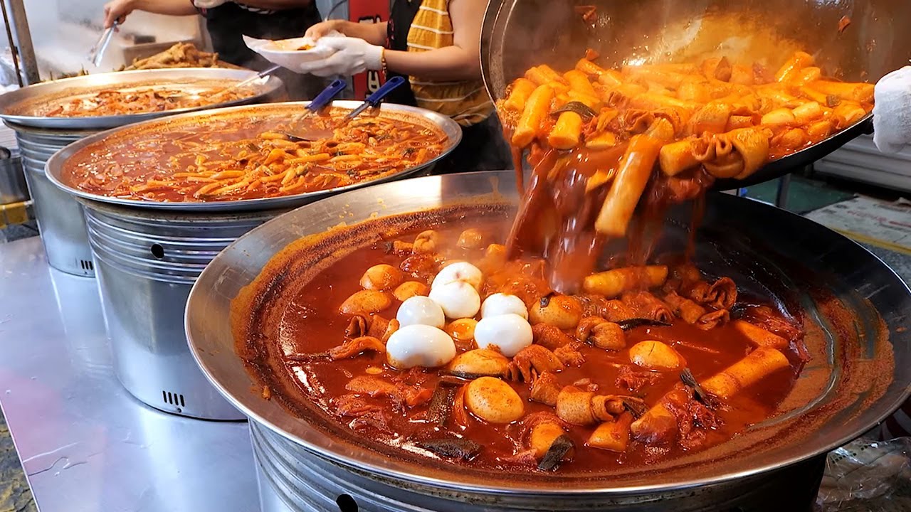 Популярный закусочный магазин на традиционном рынке - корейская уличная еда.