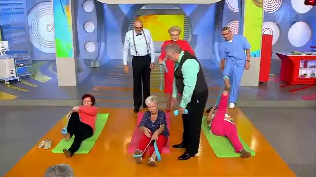 Врачи Медицинского центра Елены Малышевой показывают пациентам, какие упражнения на растяжку можно делать при болях в пояснице и коленях.