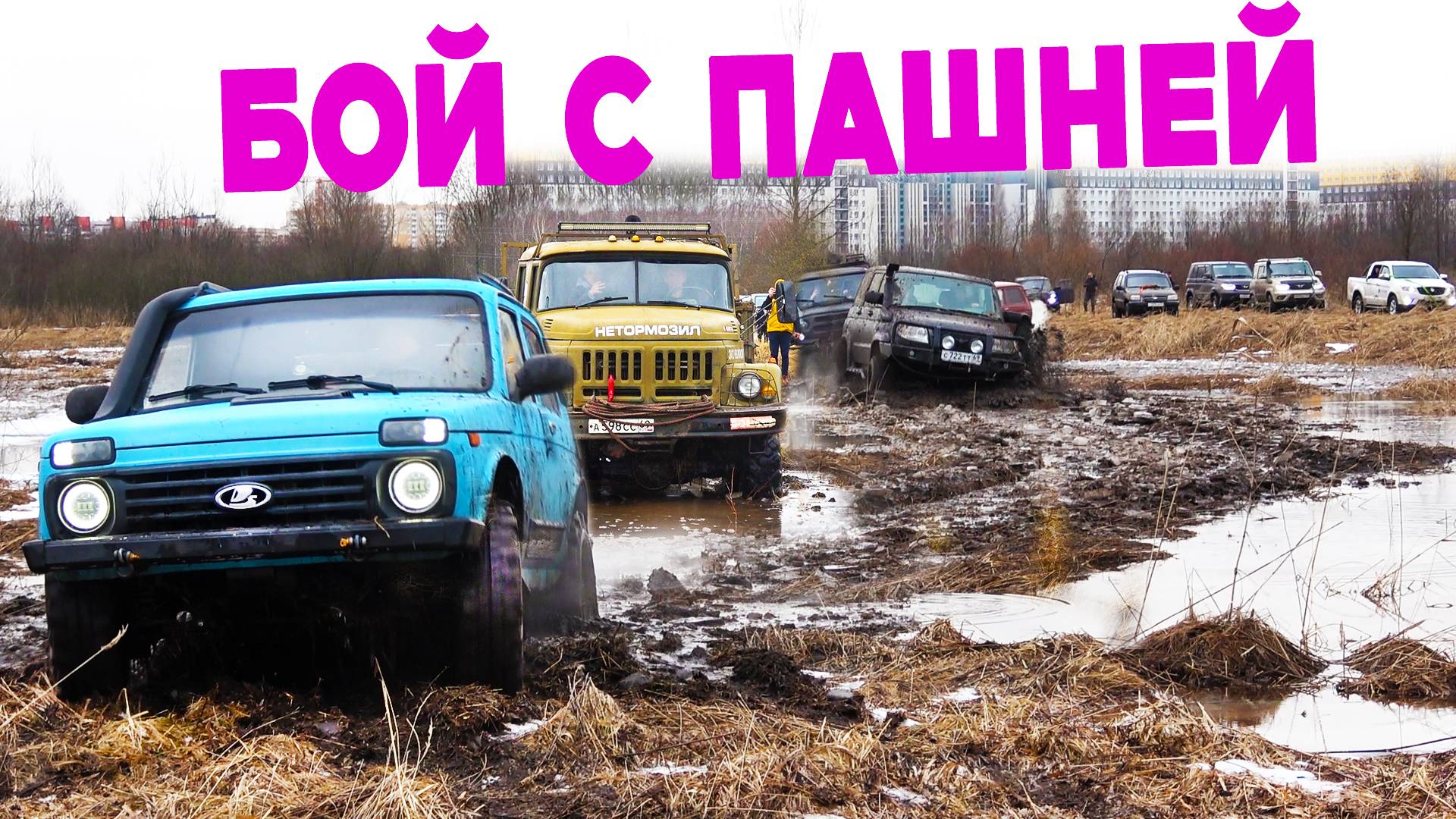 Штурмуем раскисшее в середине Января поле. Подготовка колонны весьма разнообразна и варьируется от стандартных городских внедорожников на шоссейной резине до военных полноприводных грузовиков времён СССР. УАЗ Буханка УАЗ Патриот УАЗ Хантер Нива 3Д Нива Шевроле TANK 300 (ТАНК 300) разных конфигураций Suzuki Grand Vitara (Сузуки Гранд Витара) Toyota 4Runner (Тойота Фораннер) ТагАЗ Tager Great Wall ЗИЛ 131 Сегодня нам встретилось множество преград от топкой земли под ногами, до технических неисправностей, посмотрим, как всё пройдёт. Приятного просмотра :-) Запросы по рекламе ► AleksandrCur2@yandex.ru