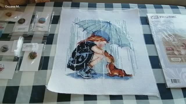 Девочка и собака под зонтом.Вышивка по набору Джой Сандей.mp4