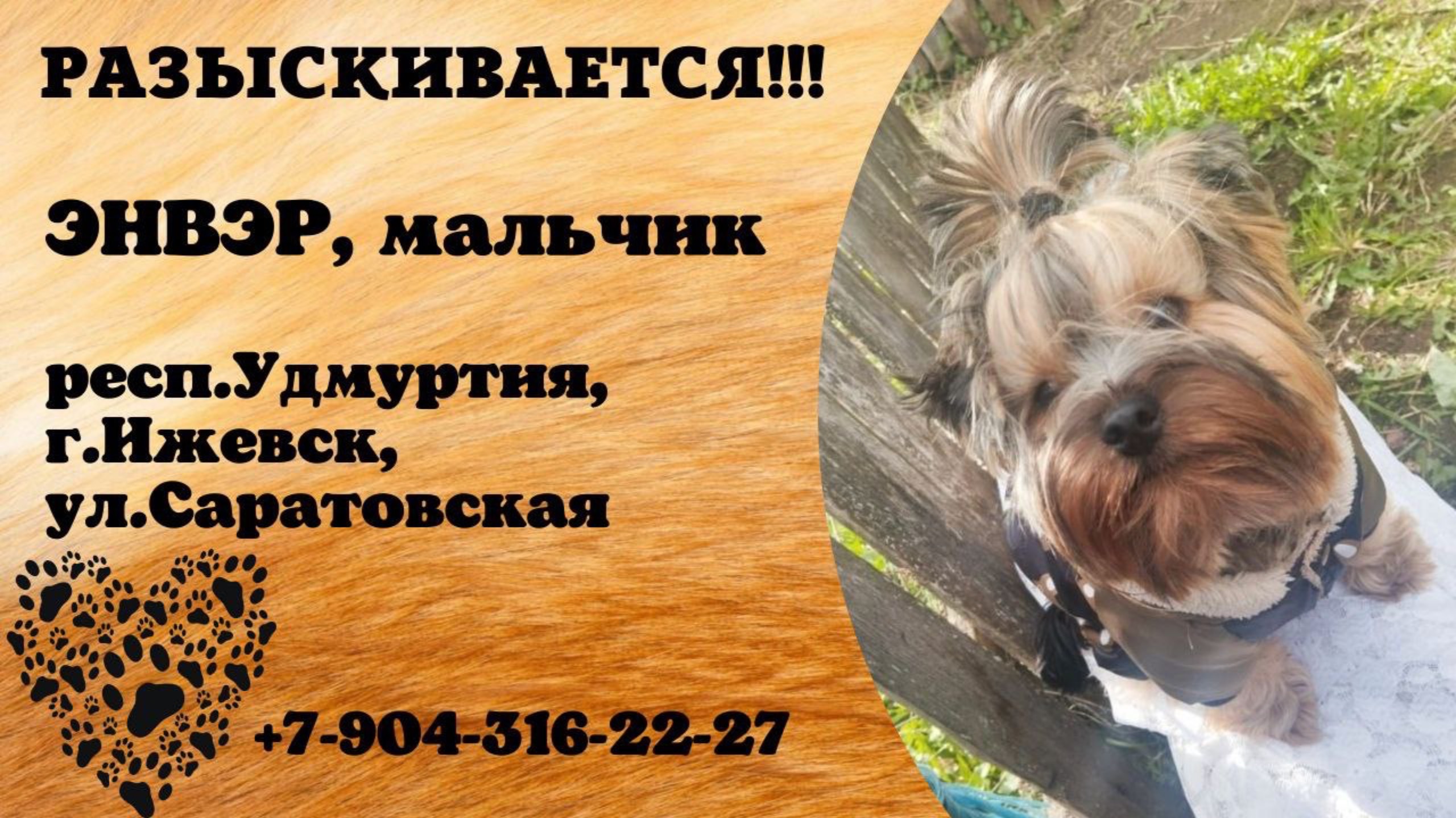 Удмуртия Ижевск Пропала собака 12.08 Пропала собака по кличке Энвэр(Вэрик) по улице Саратовская 36 Просьба если что видел позвонить по номеру +7 904 316-22-27 Нашедшему вознаграждение Автор @leniza_zhuravleva@leniza_zhuravleva Инфо: https://vk.com/wall-198815410_207718 #пропала_собака#ижевск#удмуртия