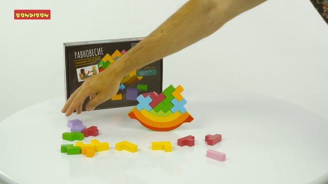 Развивающая игра-балансир из дерева Bondibon «ПТИЧКА» "В комплект входят: балансир в виде птички —1 шт., цветные цилиндры —12 шт. Настольная игра «Птичка» познакомит вашего малыша с таким физическим свойством предметов как равновесие, способствуя развитию таких навыков как умение чувствовать баланс и силу тяжести предметов, стратегически мыслить, принимать выверенное с точки зрения эмпирического опыта решение. Правила: Расположите «птичку» в центре стола и аккуратно укладывайте на её крылья цветные цилиндры. При этом каждый последующий цилиндр правого крыла должен уравновешивать предыдущий цилиндр левого крыла (или наоборот) таким образом, чтобы конструкция удержалась на месте. Главная задача игроков заключается в том, чтобы птичка удержала равновесие." "Развивайте координацию движений, пространственное мышление, мелкую моторику рук, концентрацию внимания на предмете и воображение ребенка с помощью настольной игры «Равновесие»! Она познакомит вашего малыша с таким физическом свойством предметов как равновесие, а также с основной цветовой гаммой. Все составляющие элементы настольной игры выполнены из экологически чистого материала – дерева, обработанного безопасными красками. Расположите балансир в центре стола и аккуратно, шаг за шагом, укладывайте на неё цветные фигурки таким образом, чтобы одни четко подходили к другим и между ними не оставалось зазоров. Главная задача заключается в том, чтобы постепенно собрать на балансирующей конструкции все разноцветные элементы, не уронив какой-либо из них. В случае падения хотя бы одной детали игра начинается заново. В комплект входят: балансир —1 шт., цветные детали —20 шт." "Развивайте координацию движений, пространственное мышление, мелкую моторику рук, концентрацию внимания на предмете и воображение ребенка с помощью настольной игры «Полумесяц»! Она познакомит вашего малыша с таким физическим свойством предметов как равновесие, а также с основной цветовой гаммой. Все составляющие элементы настольной игры выполнены из экологически чистого материала – дерева, обработанного безопасными красками. Расположите полумесяц в центре стола. Задача игроков заключается в том, чтобы кинуть кубик и аккуратно положить на конструкцию цилиндр того цвета, который выпадет на нём. При этом каждый последующий цилиндр должен уравновешивать предыдущие таким образом, чтобы полумесяц удержался на месте. проигравшим считается игрок, 8 результате хода которого сооружение перестало держать баланс и разрушилось. В комплект входят: балансир —1 шт., цветные цилиндры —18 шт, игральная кость —1 шт."