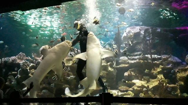 Санкт-Петербург. Акула, в танце с водолазом. Океанариум. Любимое развлечение детей и взрослых. Красиво, интересно, круто.
