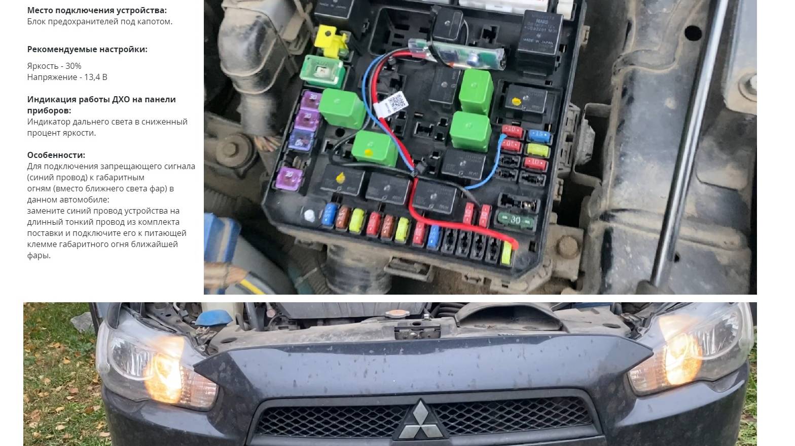 Стильно Дневные ходовые огни - это очень просто | ДХО Дальний свет в пол накала Mitsubishi Lancer 10