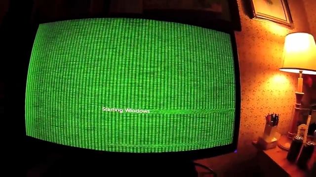 Crossover monitor showing green screen and fuzzy artefacts.