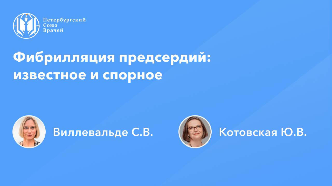 ФП: известное и спорное Дата проведения: 18.09.2024, 20:00 Страница мероприятия: https://spb.doctor/i/240918/ Программа: 1. ФП: известное и спорное. Виллевальде Светлана Вадимовна, Котовская Юлия Викторовна 2. Ответы на вопросы О семинаре: Фибрилляция предсердий является самой частой аритмией среди взрослых, ассоциирована с неблагоприятными исходами и снижением качества жизни пациентов. На семинаре будут представлены ключевые изменения в принципах ведения коморбидных пациентов с ФП, обсуждены подходы к антикоагулянтной терапии в сложных группах пациентов - с нарушением функции почек, печени, экстремальными значениями массы тела, в периоперационном периоде и др.
