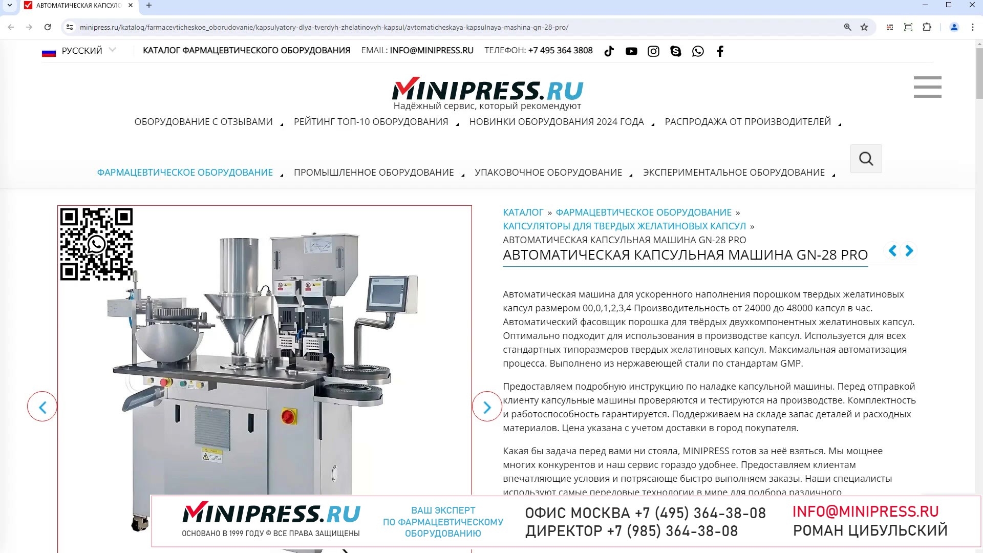 Компания MINIPRESS.RU имеет большой опыт работы с различными БЛИСТЕРНЫМИ МАШИНАМИ. Мы знаем как упаковать в блистеры желатиновые капсулы, таблетки, шприцы, зубные щетки, стеклянные ампулы, мед, сливочное масло и сливки. Блистирование, блистерные машины, блистерное оборудование, производство блистеров их ПВХ и алюминиевой фольги это основная сфера нашей деятельности. Компания Романа Цибульского MINIPRESS.RU занимается поставкой большого ассортимента фармацевтического оборудования из Китая, Кореи, Индии, Европы и других стран. Мы выполняем работы по поиску, подбору, закупке, доставке, и таможенной очистке оборудования с доставкой в любой город России и стран СНГ. Основатель и ведущий специалист компании - Роман Цибульский. Компания MINIPRESS.RU (зарегистрированный товарный знак) основана в 2000 году. Онлайн каталог оборудования MINIPRESS.RU ежедневно посещают несколько тысяч человек. Мы развиваем крупные каналы в социальных сетях, посвященные тематике фармацевтического оборудования. Вы можете посмотреть видео ролики об оборудовании, которым мы занимаемся. Фактически у нас самый большой в России многоязычный каталог фармацевтического оборудования с фотографиями, описаниями, и что более важно с ценами и видео демонстрацией оборудования в работе. Подбор оборудования и консультации ведет сам владелец компании - Роман Цибульский. Компания имеет огромный опыт в работе с различным оборудованием, технологиями. Помогаем клиентам выбрать модель фармацевтического оборудования, которое сможет решить поставленную задачу. Наши специалисты помогают рекомендациями в решении проблем по эксплуатации оборудования. Наша компания имеет офис в г.Шанхай и несколько менеджеров, которые помогают в работе с китайскими поставщиками. Мы долго сотрудничаем и дружим с этими специалистами. Китайские поставщики ценят нас как постоянных партнеров. Роман Цибульский Директор компании Минипресс Поставка фармацевтического оборудования в Россию Пишите: info@minipress.ru Gmail: boss.minipress@gmail.com Офис в Москве +7(495)364-38-08 Мобильный +7(985)364-38-08 (WhatsApp) Каталог оборудования https://www.Minipress.ru/katalog/ МИНИПРЕСС.РУ В СОЦИАЛЬНЫХ СЕТЯХ FB https://facebook.com/roman.tsibulsky YOUTUBE https://www.youtube.com/@farmacevticheskoe_oborudovanie INSTAGRAM https://www.instagram.com/farmacevticheskoe_oborudovanie/ #дойпак #цена #заработок #счетчик #саше #сортировка #продажи #коатер #жидкости #таблетка