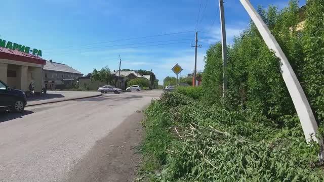 Знак "подстригли". 2.1"ГЛАВНАЯ ДОРОГА". Кемеровская обл. г.Ленинск-Кузнецкий. Менделеева 9