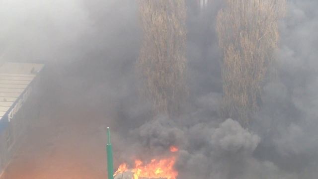 Калининград, пожар, 05.04.2015, горит грузовик во дворе.