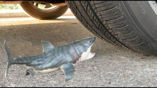 Машина давит предметы колесом! Эксперименты с колесом! Давим акулу 🚗🦈 Залипалка ASMR