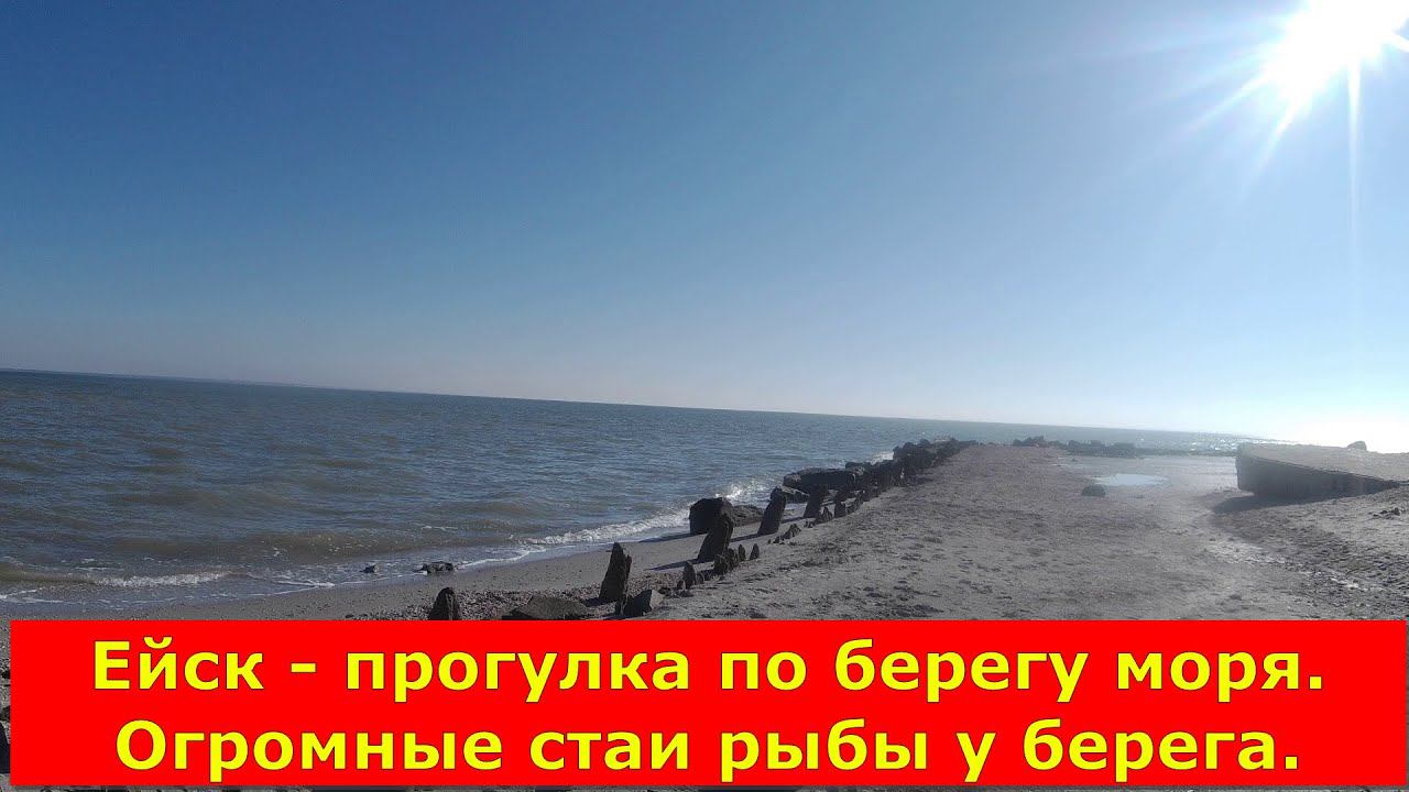 Ейск - прогулка по берегу моря. Огромные стаи рыбы у берега.